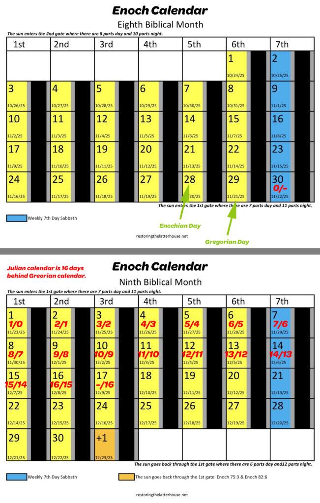 - A sister in Christ named Hlengiwe was taught by Jesus in a vision three calendars: the Gregorian (the one we use today), the Julian (the predecessor to the Gregorian) and the Enochian (given by God Himself to ancient Enoch who was raptured at the age of 365 years old [a definite nod to the Julian and Gregorian calendars], who was the 7th from Adam).